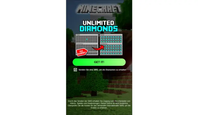 Affiliate program Minecraft Unlimited Diamonds - 1 Click